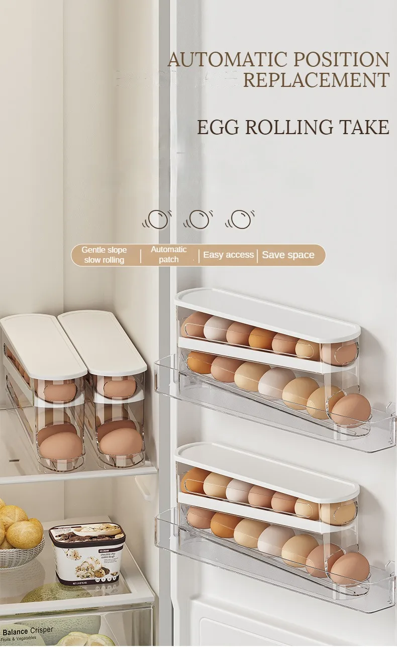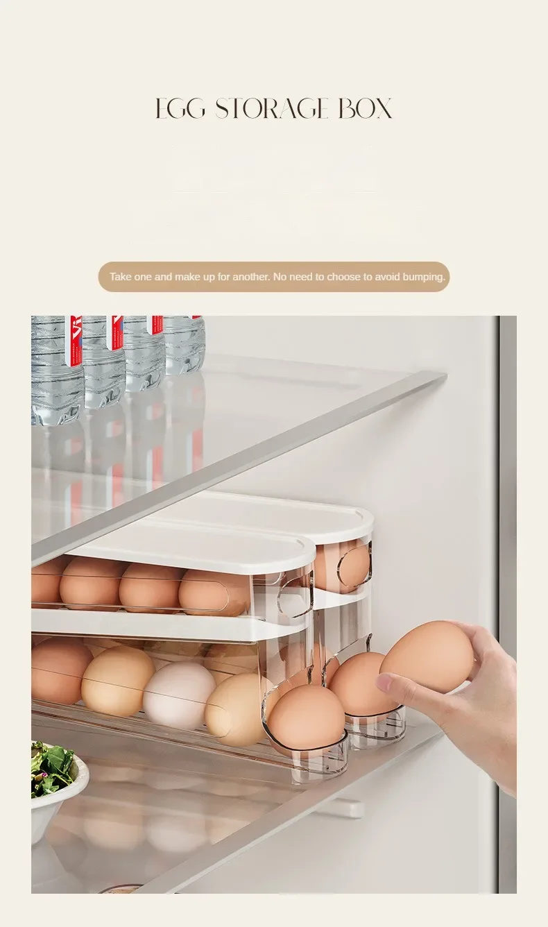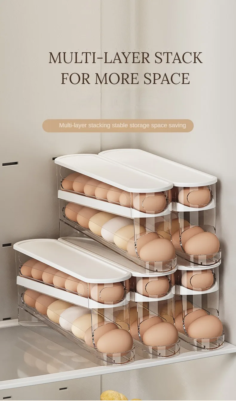 Bilayer Fridge Egg Storage Box Automatic Rolling Eggs Holder Rack Ladder Style Refrigerator Eggs Dispenser Egg Organizer Holder