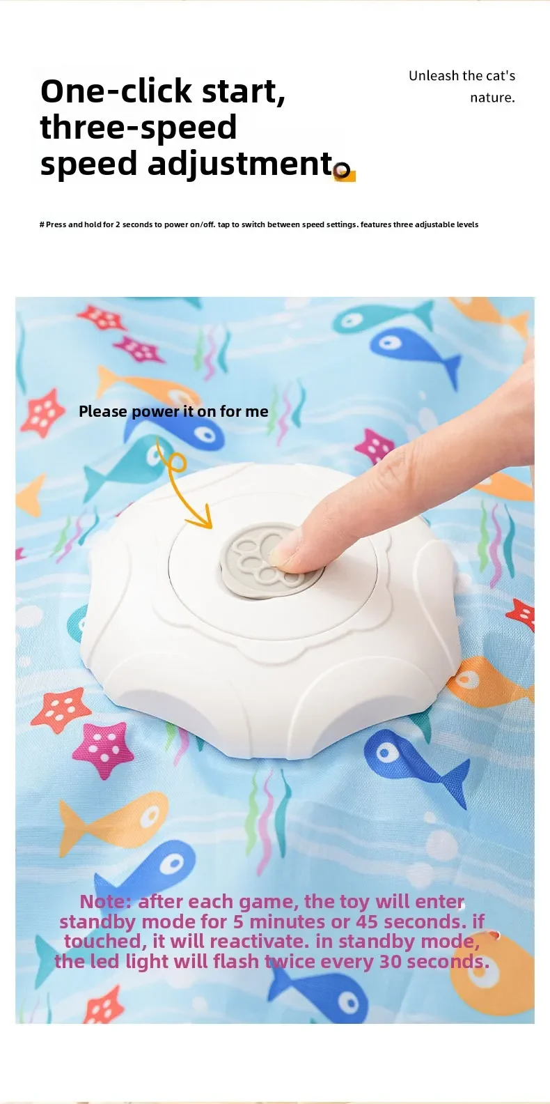2. Two speed modes: fast (green light) and slow (yellow light) This feather cat toy is suitable for various cat play styles, whether playing alone or in a group, keeping your cat active, reducing boredom, and enjoying hours of indoor fun and enriching experiences.