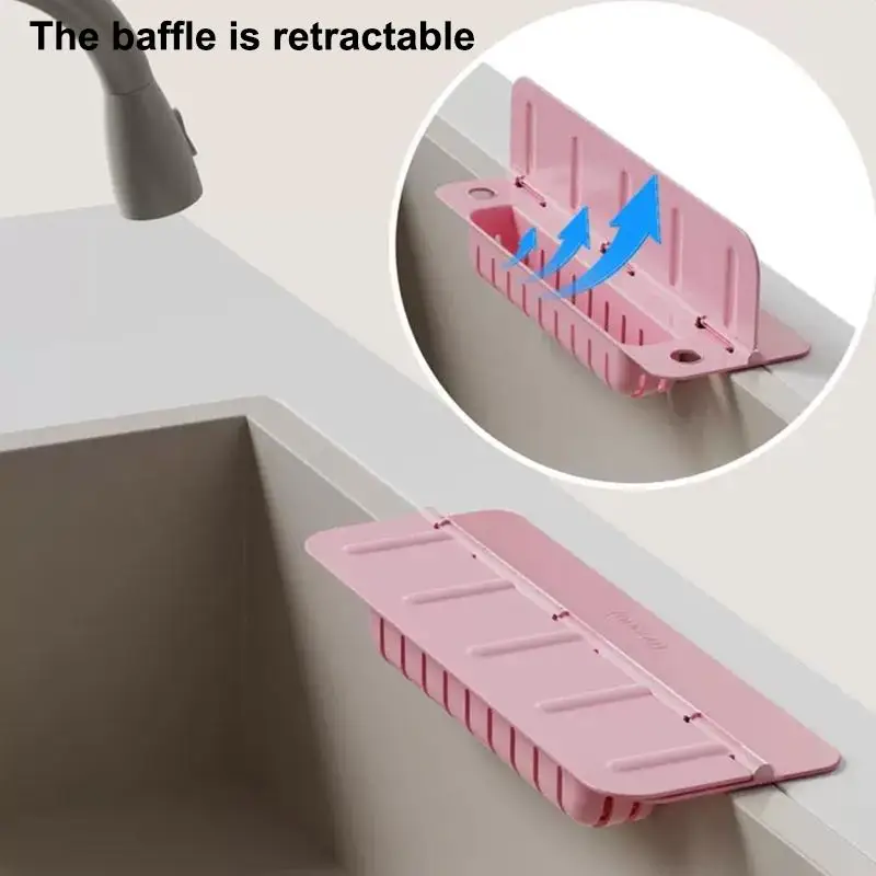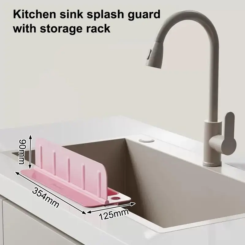 〔R〕Kitchen Sink Splash Guard with Storage Rack - Flexible Placement Water Splash Baffle with Organizer