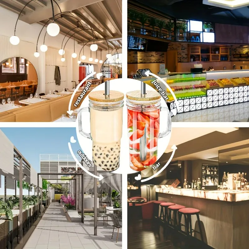750ML Glass Cup Wooden Lid Bubble Tea Cold Drinking Coffee Wine Juice Milk Transparent Straw Car Mug Cup Drinkware Water Bottle