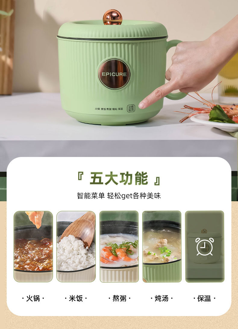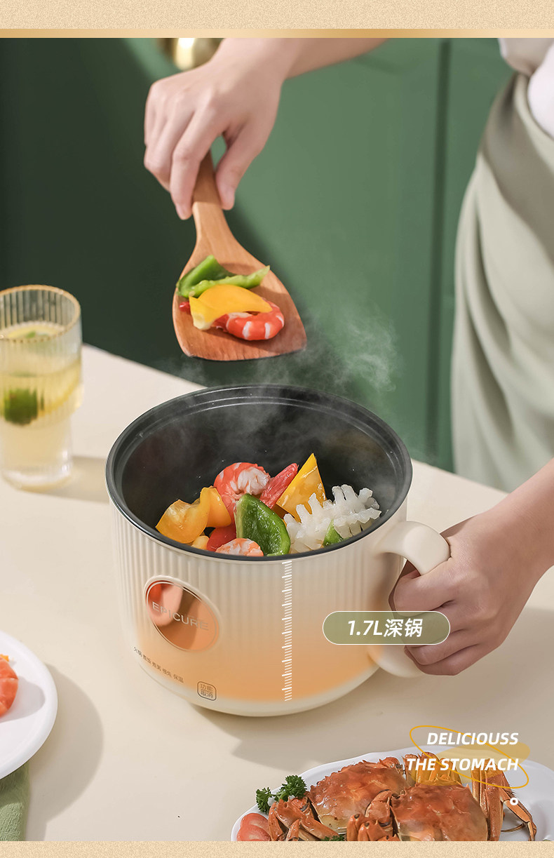 | mini electric hotpot, dorm cooking pot, noodle cooker, compact electric cooker, student hot pot, small kitchen appliance, 1.7L multifunction cooker, one-person hot pot |
