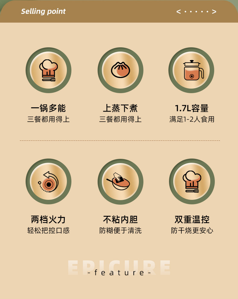 | All-in-One Cooker: Boil, steam, stew, and fry. | |