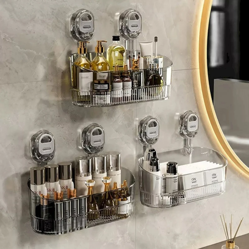 No-Drill Bathroom Suction Storage Box Large Capacity & Strong Load-Bearing Multi-Functional Suction Cup Wall-Mounted Shelf Rack